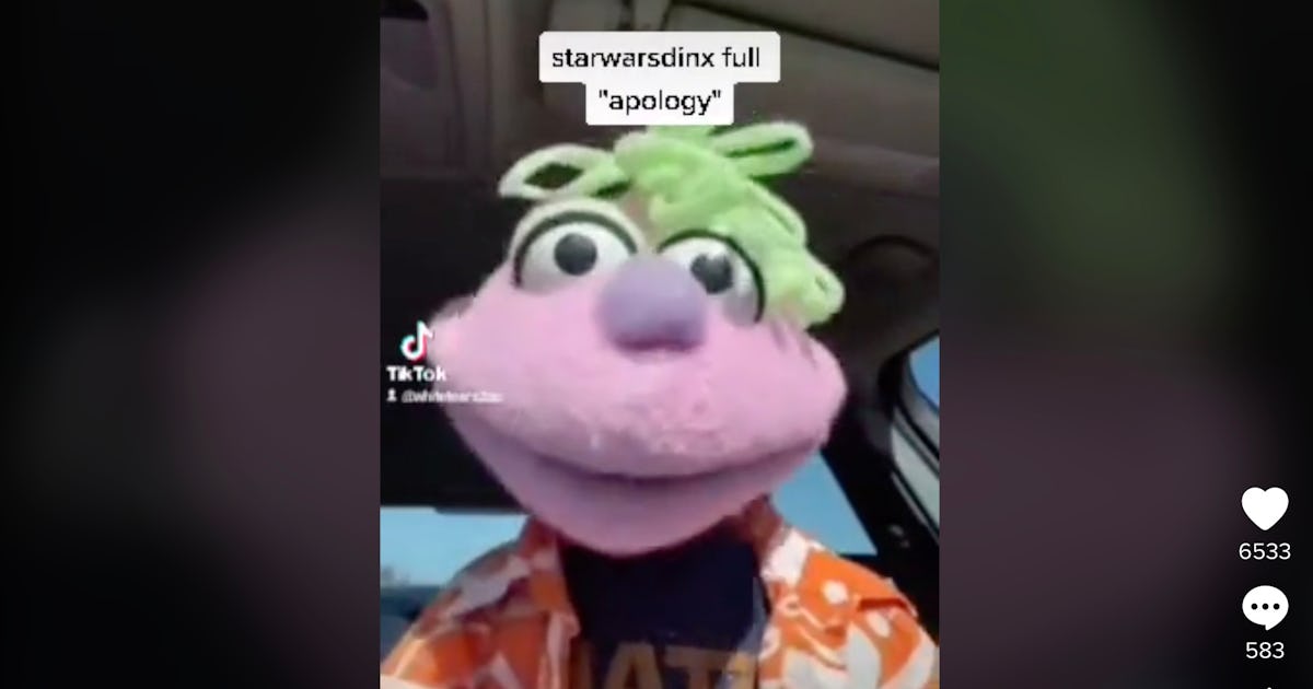 Star Wars Dinx was a TikTok account that focused on Star Wars lore. The happy purple puppet with a mop of green hair wore different Star Wars outfits as he explained the nuances of Gray Jedi, the power of the Darksaber, and his opinions on the minutia of the Star Wars universe in a soft-spoken voice. He answered questions, cracked jokes, and generally seemed like a wholesome presence on your TikTok feed.