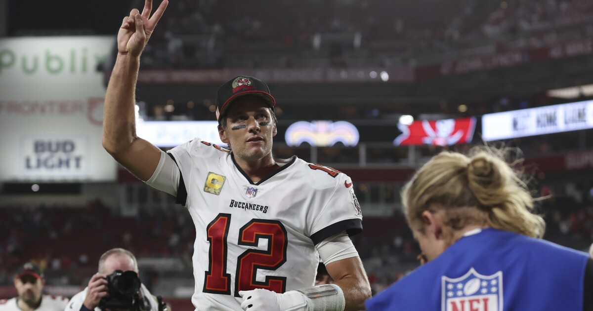 With 44 seconds remaining in the game, Brady led the Buccaneers on a drive for 54 yards, capped with a touchdown pass to Cade Otton for one yard with 9 seconds remaining in the game.
