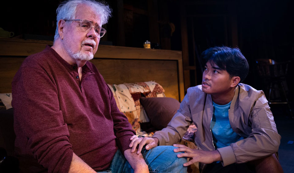 Hunter’s play has six characters, directed by Elina de Santos with elegant finesse. They include the elderly (“doddering” might be the appropriate word) Walt (John Perrin Flynn), formerly married to Abby. As someone who reputedly overcame his teenage infatuation with another boy, he has devoted his life to “curing” gay teenage boys, though his newest ward Daniel (Jeffrey Delfin) causes him to question his previously unwavering stance. Walt doesn’t keep track of his past mentees, so he is not quite sure how well he did in “converting” them to the straight and narrow. He’s renowned in the community for not being too heavy-handed with the Scripture and judgment, and is remembered for his intense, supportive listening. Maybe he’s taken these young men under his wing mostly to be in their presence for his own vicarious pleasure.