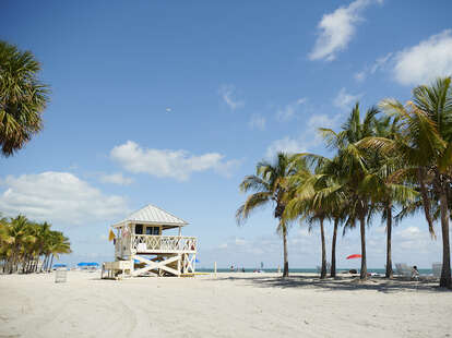 No other swath of beachfront is as popular with Miami’s queer community as 12th Street Beach, which is marked by rainbow flags surrounding the kaleidoscope-colored lifeguard stations. The beach sits right in the middle of Lummus Park in South Beach, with volleyball courts and an outdoor gym nearby should you desire a muscle pump before hitting the sand. There are dozens of gay-friendly bars and restaurants on the park’s fringes, including drag brunch mainstay Palace Bar and indoor-outdoor nightclub Twist South Beach. Each year, 12th Street Beach also serves as the kick-off point for Miami Beach Pride’s raucous festivities.