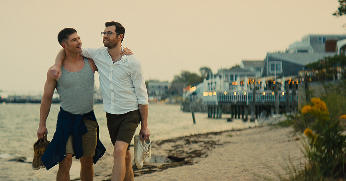 There’s an irony here though: While it, in its brief literal screen time (about 10ish minutes), illustrates the place as a goofy gay time, it’s the scene with Bowen Yang’s wealthy producer that gestures towards the more complicated reality of Provincetown, beyond its reputation as a haven. When introducing Yang’s character, he argues with a neighbor about a bush and where it falls on the border between their properties, as if to imply the petty bourgeois turf wars have leaked into gay culture. It’s a clever joke, and generously reads as an amusing critique of the kind of people that have come to dominate the area. (“Beige dentists,” a friend once quipped to me to describe who often bought property in town.)