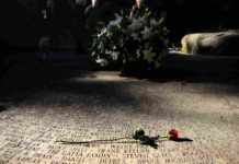 A flower lays on the engraved names of AIDS victims at the National AIDS Memorial Grove on December 1, 2015...