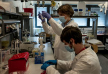 Researchers work in Monoclonal Antibody Discovery Lab at TLS Foundation in Siena, Italy. (Gianluca Panella/Getty Images)