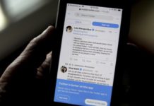 A person reads tweets by Indian celebrities, one of the many backing the Indian government, on his mobile in New Delhi, India, Thursday, Feb. 4, 2021. It took just one tweet...