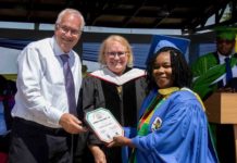 Founder and Board Chair of the Ensign Global College, Mrs. Lynette Gay presenting a plaque Vice Board Chair of the Ensign Global College, Professor Agyemang Badu Akosa, has called for...