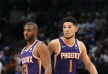 Devin Booker assists Suns’ teammate Chris Paul at Elite Guard Camp for top high...