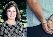 Murdered computer engineer Laurie Houts next to a man’s hands in handcuffs.Twice he was tried, and twice, a jury failed to convict John Kevin Woodward for killing his roommate’s girlfriend, a...