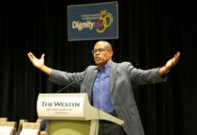 Theologian Fr. Bryan Massingale addresses the 2019 DignityUSA conference in Chicago. The group, which is holding its first in-person conference since 2019, has made some programming changes...