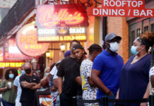 People queue to enter a restaurant in New Orleans' French Quarter in early August. Mario Tama/Getty Images hide...