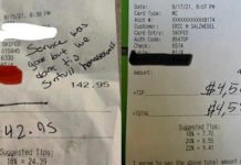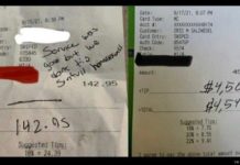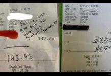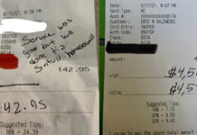 A petty customer stiffed a waiter in Madison, Wisconsin. Instead of a tip, the Loving Christian™ left behind a misspelled note that said, “Service was good but we don’t tip sinfull homosexuals.”