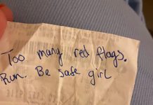 Gay guy slips warning note to woman on an unsettling date: ‘Run. Be safe...