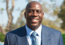 Magic Johnson’s Gay Son EJ Showcases Slimmer Figure in Red Plunging Suit Celebrating Father’s...