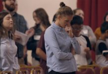 Conversion therapy survivor Julie Rodgers at church in “Pray Away,” directed by Kristine Stolakis. Image courtesy of Multitude FilmsCHICAGO (RNS) — Julie Rodgers has been on quite a journey.