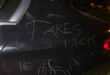 Someone etched “takes dick” into two cars in Brookhaven – one owned by a gay man – and slashed the tires of a vehicle in what one of the victims claimed...