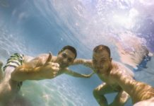 Two friends enjoying diving in the sea, on a warm summer day. Start planning today for the best gay ... retirement plan. ...