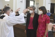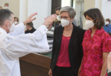 During the ceremony, Father Mönkebüscher walked around the nave, approaching couples who sat in pairs, socially distanced and masked. They rose as he placed a hand on their shoulders and spoke...