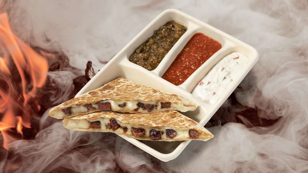 The Quesabrisket takes the new Smoked Brisket and folds it into a melty quesadilla. Then to turn up the heat, Chipotle is serving the Quesabrisket with Queso Blanco, Tomatillo-Red Chili Salsa, and Tomatillo-Green Chili Salsa on the side. The chain also suggests a new menu hack, mixing Queso Blanco and Tomatillo-Red Chili Salsa to get Spicy Queso. The intense heat of the Spicy Queso makes it the perfect dip for the melty Smoked Brisket Quesadilla, while the Tomatillo-Green Chili Salsa adds a unique pepper flavor.