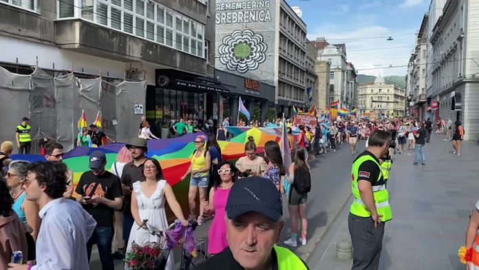 Crowds marched through the streets of Oslo, Norway, on Saturday, June 25, one day after a gunman killed two people and left at least 19 seriously injured during the city’s annual Pride festival.Police said that the shootings happened at three locations on Friday, including outside and inside the London Pub, a bar popular with the city’s LGBTQ+ community, according to Aftenposten.Police said they considered the attack an act of extreme Islamist terrorism. A 42-year-old man was arrested and charged murder, attempted murder and terrorist acts.The country’s terror threat level was raised to level five, the highest number, in response to the incident. The Oslo Pride organization announced it had canceled all pre-planned events for Saturday after they said they received “clear advice and recommendations” from Norwegian Police. Credit: Filter Nyheter via Storyful