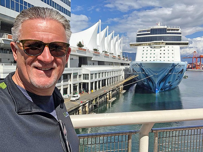 Adam Martindale takes time to pose in Vancouver at Canada Place Cruise Terminal during a recent trip north. Photo courtesy Adam Martindale