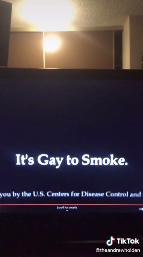 In mid-April 2021, a TikTok video purported to show an anti-smoking PSA that said, “It’s gay to smoke.” The end of the clip claimed: “Brought to you by the U.S. Centers for Disease Control and Prevention.”