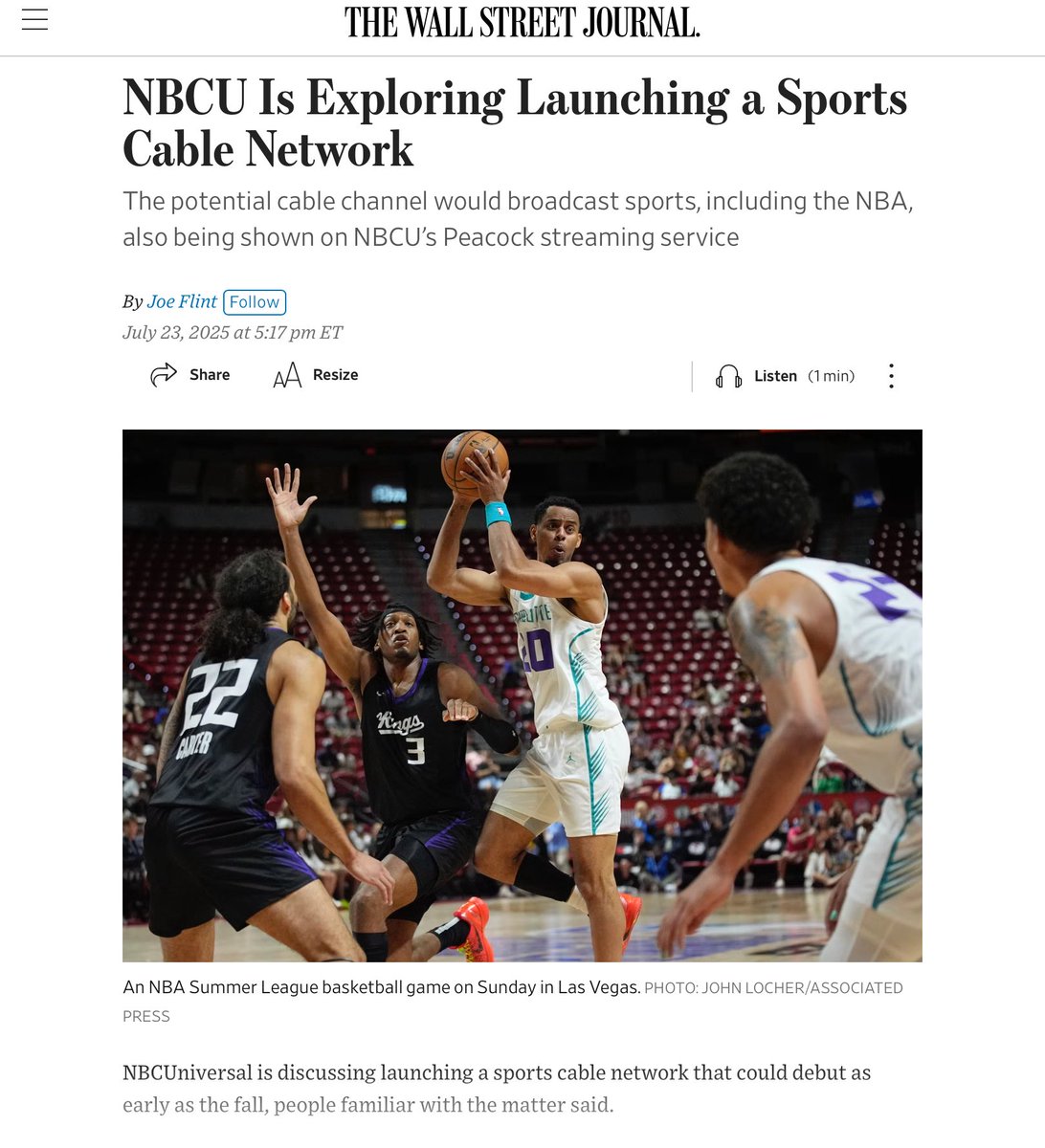 Home Sports Exclusive | NBCU Is Exploring Launching a Sports Cable Network – The... Sports Exclusive | NBCU Is Exploring Launching a Sports Cable Network – The Wall Street Journal By News Editor - July 23, 2025 77 0 Facebook Twitter Google+ Pinterest WhatsApp Exclusive | NBCU Is Exploring Launching a Sports Cable Network The Wall Street Journal Favorite RELATED ARTICLESMORE FROM AUTHOR Sports Full-length Replay: Big Ten Men’s: Illinois at Iowa – FOX Sports Sports 12 insane numbers that define Indiana’s CFP dominance – Yahoo Sports Sports Why the Thunder suddenly look beatable after historic start – Yahoo Sports Sports The World’s Most Profitable Sports Teams 2026 List – Forbes Sports Sources: 9 MLB teams end deals with Main Street Sports Group – ESPN Sports Where to watch Miami vs. Ole Miss: Live stream, TV channel and time for CFP Fiesta Bowl game – CBS Sports