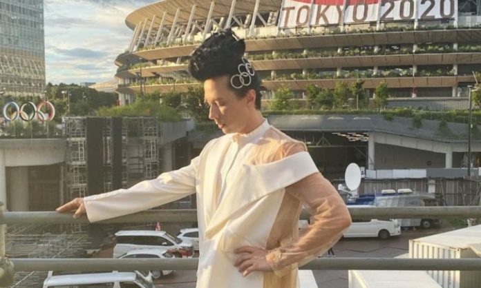 For the Tokyo Olympics closing ceremony on Sunday (8 August), Weir – a two-time Olympian himself – threw on a strappy cream-colour jacket with a sheer back, and wore his hair tall with a glistening Olympic ring hairclip