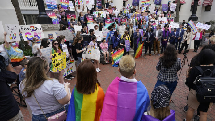 Moricz also said in an open letter to the state’s graduating seniors that he had partnered with the Social Equity and Education Initiative to create 10,000 “Say Gay” stickers, to be mailed to high school seniors across the state. Students who request the stickers are encouraged to wear them on their gowns as they cross the stage during graduation.