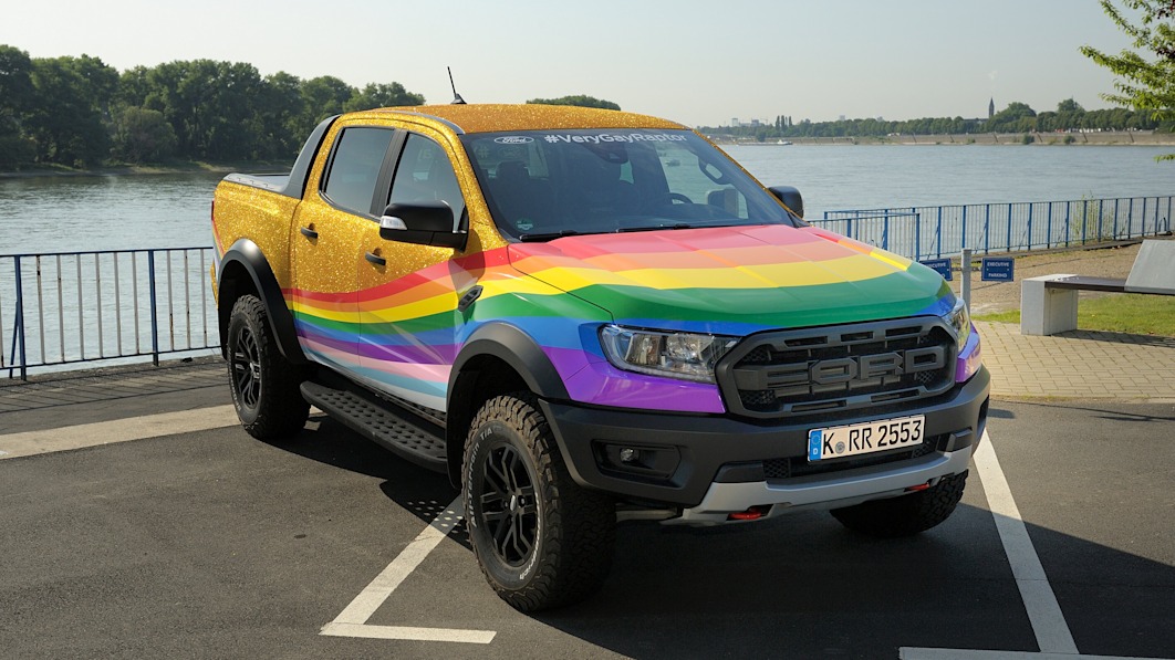 What Ford has dubbed the Very Gay Raptor made its debut at the Christopher Street Day parade, a LGBTQ+ celebration in Cologne. Incidentally, this isn’t the first time Ford has participated at the event with a rainbow-themed vehicle. In 1997 Ford created a Ka Pickup prototype out of the Ka compact hatch. The concept never made it to production, but it was later repainted in rainbow colors by Ford’s internal GLOBE (Gay, Lesbian Or Bi-Sexual Employees) group for use in Christopher Street Day celebrations for many years.