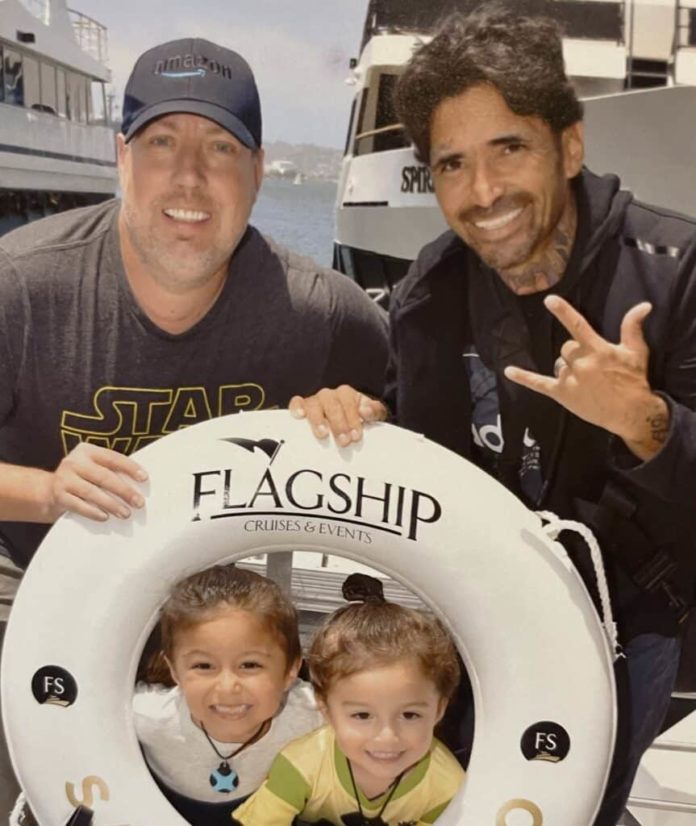 Shawn and Josh Garcia with their boys Nic and Adrean (pictured left), fundraiser organisers Michael and Robert Sarrasin (pictured right). (Michael Sarrasin)