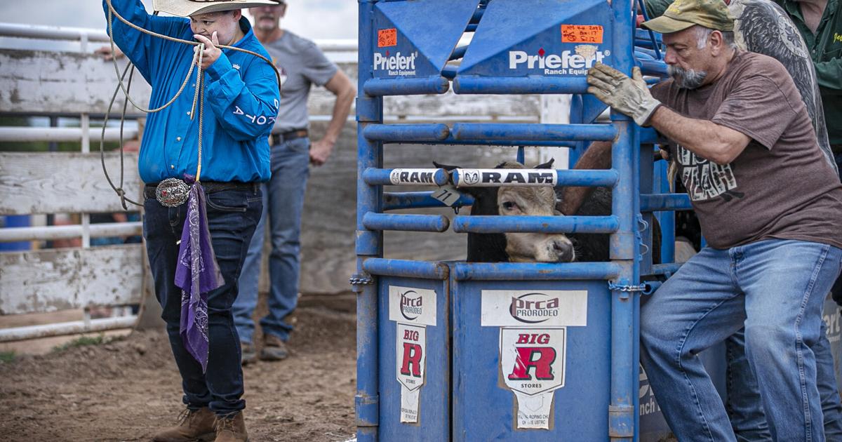 Brian Helander swung a lasso over his head, showing a group of rodeo students how to properly rope a calf.