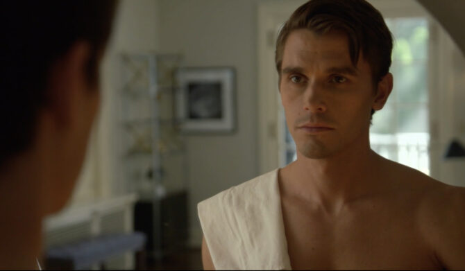 Ok, so remember the movie version of American Psycho, which was a book by noted gaybones author Bret Easton Ellis who I think someone told me is maybe a white supremacist or something now? Anyway, this is basically the opening scene of that movie—or at least I think it was the opening scene. Maybe it came slightly later? I don’t know, it’s been a long time since I watched that movie. Anyway, it’s the part in the movie where Christian Bale does a bunch of self-care or whatever in his underwear. That’s what Antoni Psycho is except instead of Christian Bale walking around a chilly 1980s Manhattan apartment in his underwear, it’s Antoni walking around an actually pretty normal looking sunny townhouse that I’m not sure I believe is actually in Manhattan in his underwear.