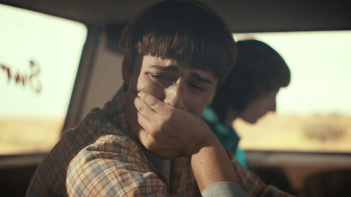 Will and Mike (Finn Wolfhard) are sat in the back of the van, discussing Mike’s relationship with Eleven (Brown).