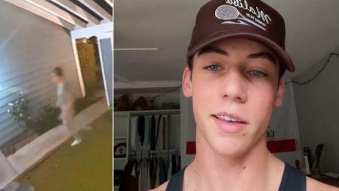 “Someone said to come up here,” the young man can be heard mumbling, before loudly yelling, “because he’s a f****t!” and running off the property.