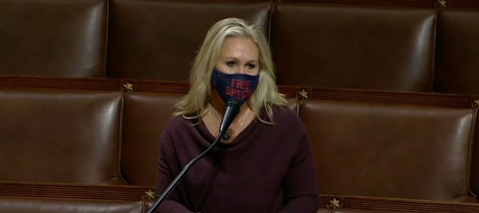 Greene, whose career in politics started by protesting Drag Queen Story Hours, put up a sign that said “There are TWO genders: MALE & FEMALE. ‘Trust The Science!’” in response to Rep. Marie Newman (D-IL) putting up a transgender flag outside of her office. Newman’s child is transgender.