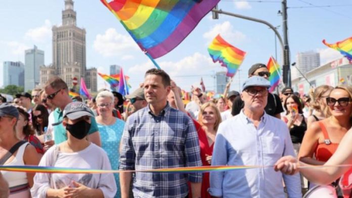 Warsaw mayor Rafal Trzaskowski walked at the head of the Equality Parade on Saturday, a sign of support for LGBT rights by the liberal politician.