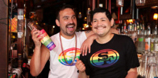 Noah Lyles of the United States, left, celebrates after leading the team to gold in the men’s 4×100 meter relay final at the World Athletics Championships in Doha, Qatar, Saturday, Oct. 5, 2019. (AP Photo/Petr David Josek)