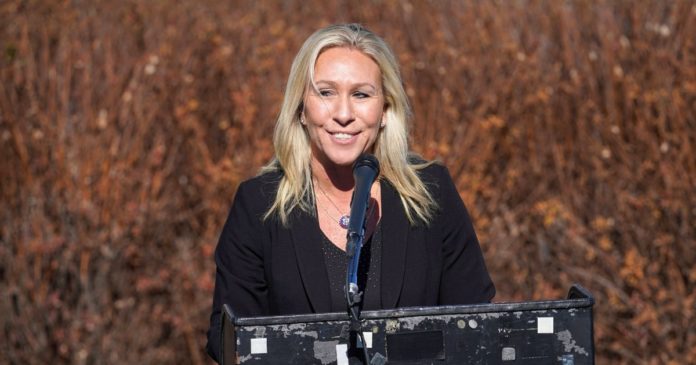 WASHINGTON — Rep. Marjorie Taylor Greene, R-Ga., placed a sign outside her office Wednesday mocking Democratic Rep. Marie Newman, whose office sits across the hall, after Newman hung a transgender pride flag next to her door in protest over Greene’s opposition to a LGBTQ rights bill.