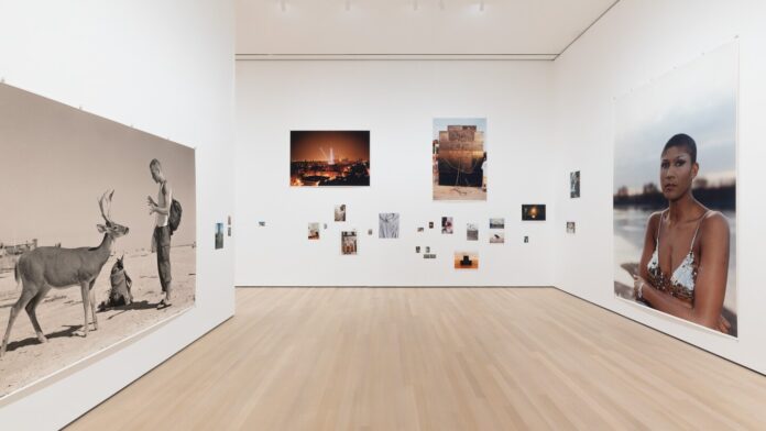 Tillmans’s photographs, from the 1990s and beyond, fill a vast suite of galleries at New York’s Museum of Modern Art in a retrospective titled “To Look Without Fear” (it will travel to the Art Gallery of Ontario in Toronto, then the San Francisco Museum of Modern Art in 2023). The show is full of humor, compassion and surprise. I love the way it is hung, with enormous prints covering huge expanses of wall beside clusters of tiny snapshots, most of them taped to the wall, but some thrown into corners or placed beside emergency-exit signs. The show made me so nostalgic that at times, I wanted to crouch down and weep.