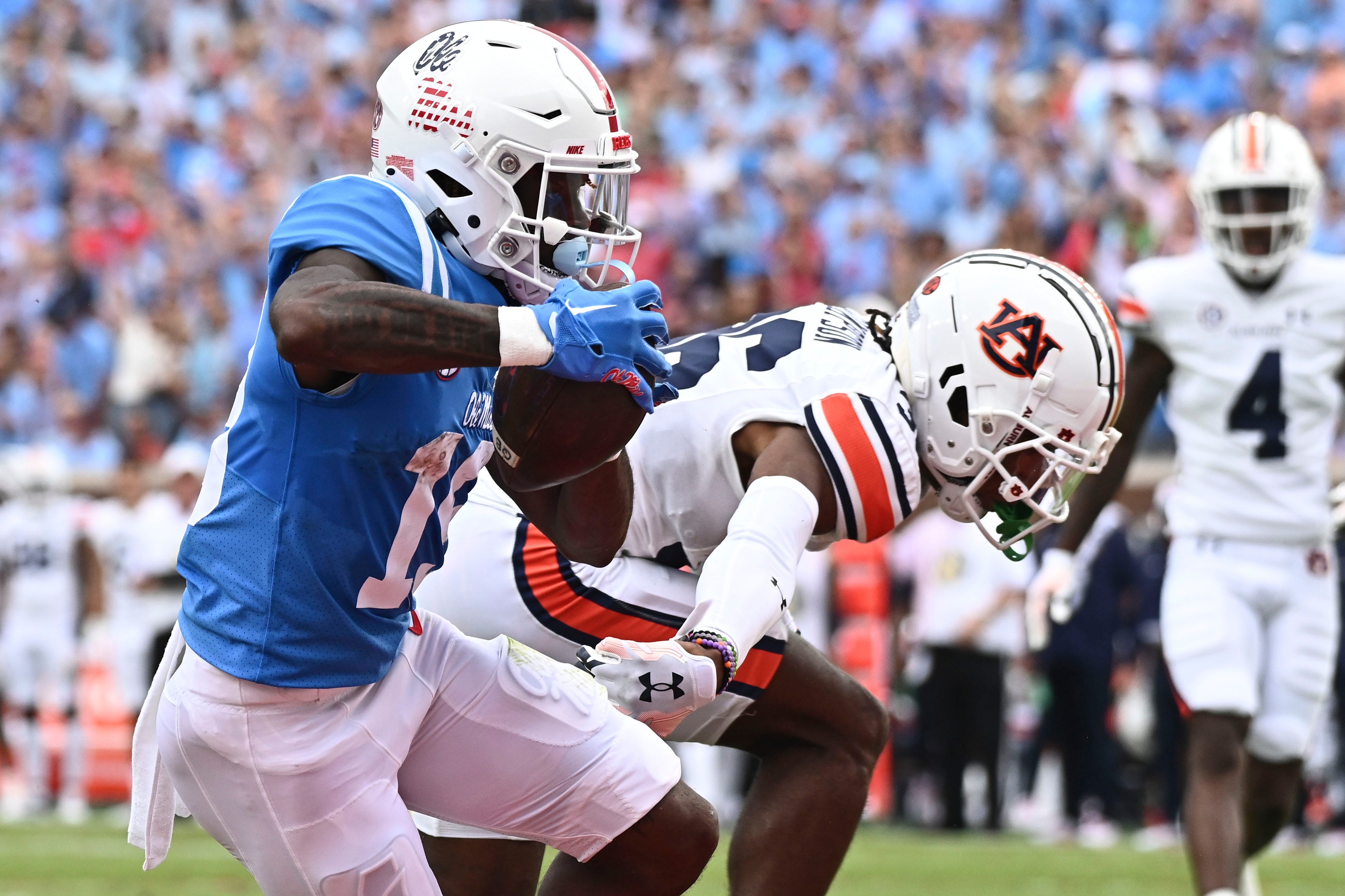 • Ole Miss/Auburn: Ole Miss (appt for a Southern State) is both too late AND too early in bringing out the stars ‘n’ stripes in their game against Auburn (with the seldom-seen white facemasks).