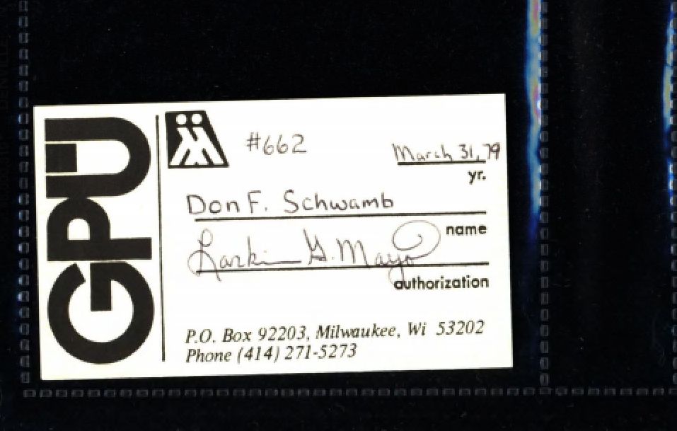 GPU membership card for Don Schwamb. (From the Archives Department, University of Wisconsin-Milwaukee Libraries)
