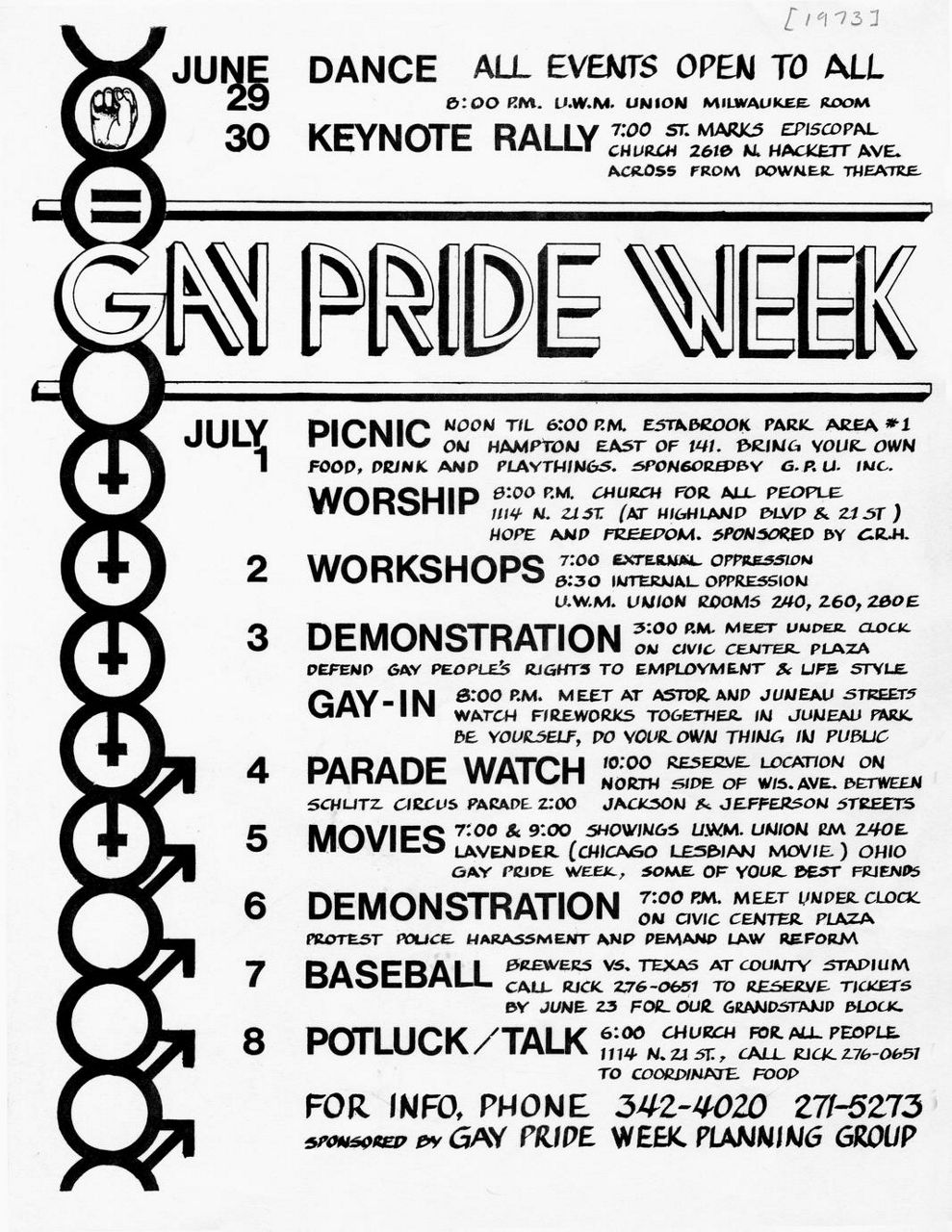 A Gay Pride Week flyer from 1973. (From the Archives Department, UW-Milwaukee Libraries)