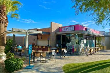 The places to shop, eat, and drink inside PSP cement its microcosmic effect. Golfers can stock up on souvenir polos at the award-winning PGA Tour Shop after flexing their putters on the city’s 100-plus courses. Weekenders might prefer one last glass of local chardonnay from the California Vintages Wine Bar. Next door, at the PSP Coffee House, travelers can sip lattes beneath photos of the Rat Pack, whose own Frank Sinatra claimed Palm Springs as a refuge from Hollywood during its Golden Age.