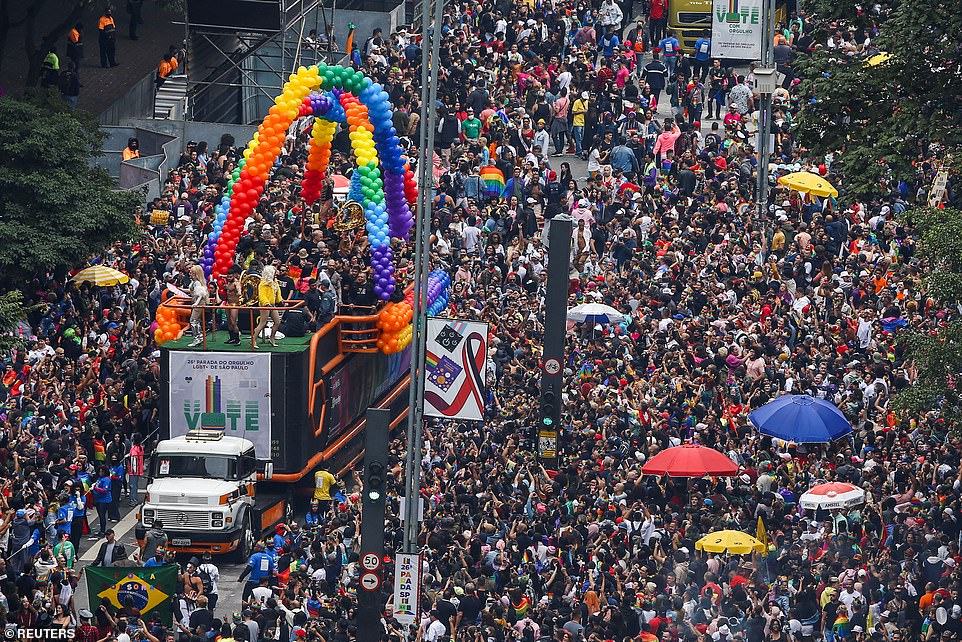 Organisers added: ‘In its 26th edition, São Paulo’s LGBT+ Pride Parade is back in defence of a fundamental theme: vote with pride – for a policy you represent.