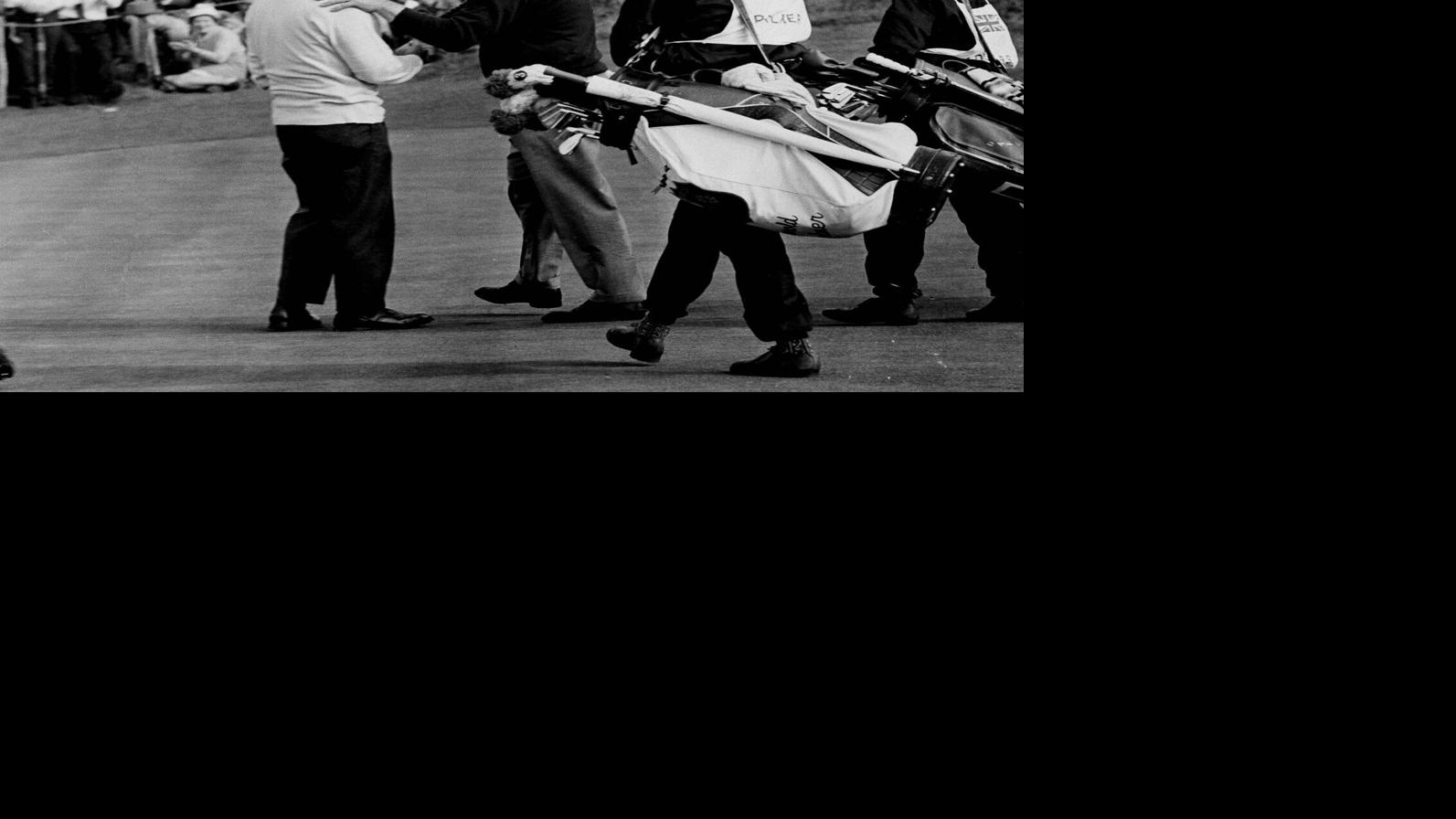 Dave Thomas, right, of Great Britain, congratulates Arnold Palmer of Latrobe, Penn., on the 13th green at the Royal Birkdale Golf Club in Southport, England, Oct. 8, 1965.