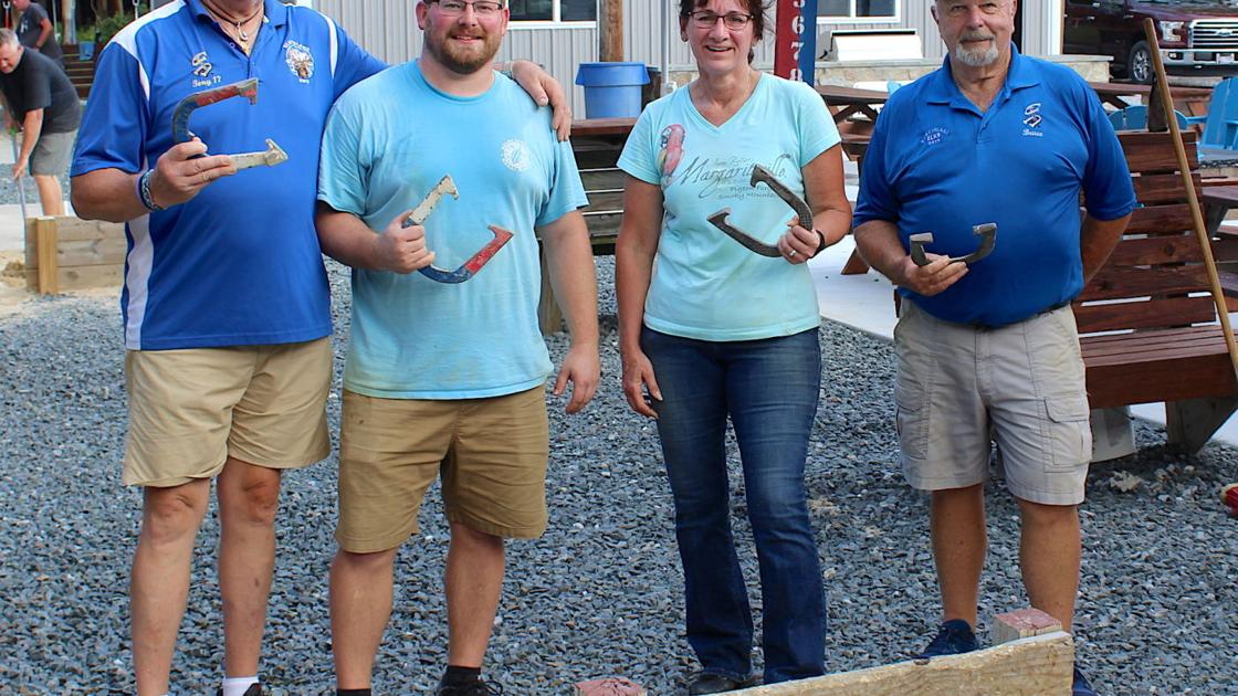 STEVENSVILLE — Longtime Kent Island Elks member and perennial top horseshoe league performer, Tony Gay of Grasonville, won his 11th career tournament championship at Lodge 2576, in Stevensville, since the year 2000, on Saturday, Aug. 28. The season began the end of March and played every Wednesday evening at the lodge horseshoe venue for 19 consecutive weeks. Eighteen two-person teams competed during the regular season, playing each other team in a five match set each week during that time period. Every team was entered in the single elimination, best of three match tournament to advance beginning Saturday morning. Teams were paired based on their regular season standings.