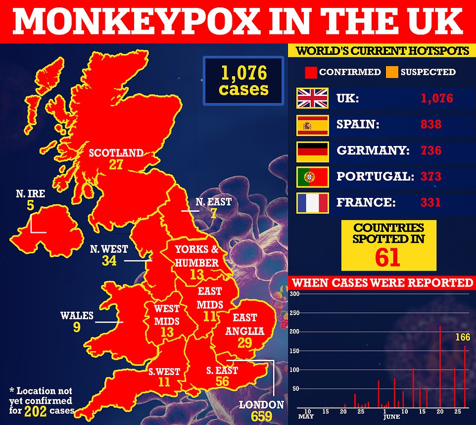 JUNE 7, 2022: The UKHSA declares monkeypox a notifiable disease. It means all medics must alert local health authorities to suspected cases. The tropical virus now carries the same legal status as the plague, rabies and measles.