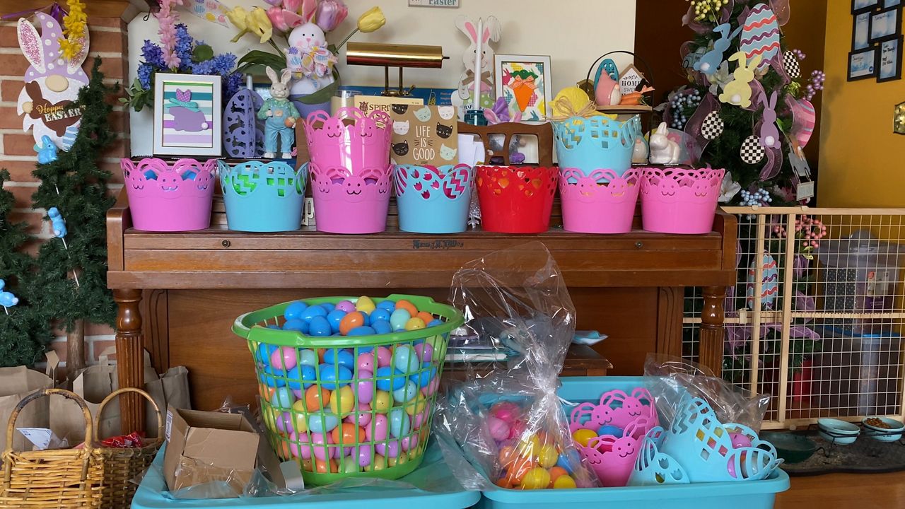 She and her staff have filled the eggs themselves with stickers, small toys, bouncy balls, and of course, candy.