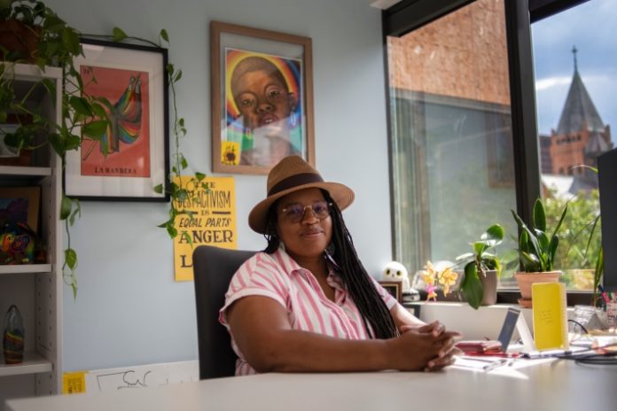 Nadine Bridges, 45, poses for a portrait on July 20 in Denver. Bridges is executive director of One Colorado, an advocacy organization working to advance LGBTQ equality in Colorado. (Olivia Sun, The Colorado Sun via Report for America)