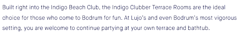 • It’s stated that after clubbing you can “continue partying at your own terrace and bathtub”