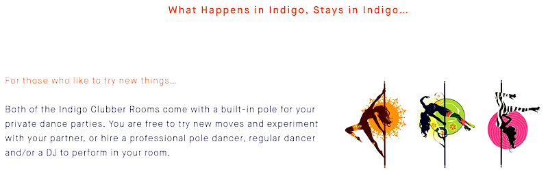 • There are pictures of poles, and then it states “what happens in Indigo, stays in Indigo”